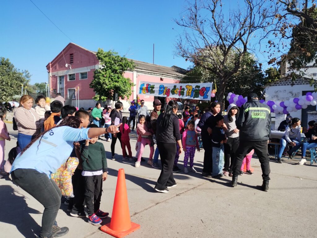 El clima acompañó y bajo un sol radiante los pequeños comenzaron a disfrutar de los juegos preparados para la ocasión en el parque vial, armado en la playa de estacionamiento de la dirección de tránsito. Al mismo tiempo, los chicos invitados y los que pasaban por el lugar se fueron sumando a la fiesta para disfrutar del pelotero y participar de los concursos organizados, como por ejemplo el de baile que fue el más participativo.