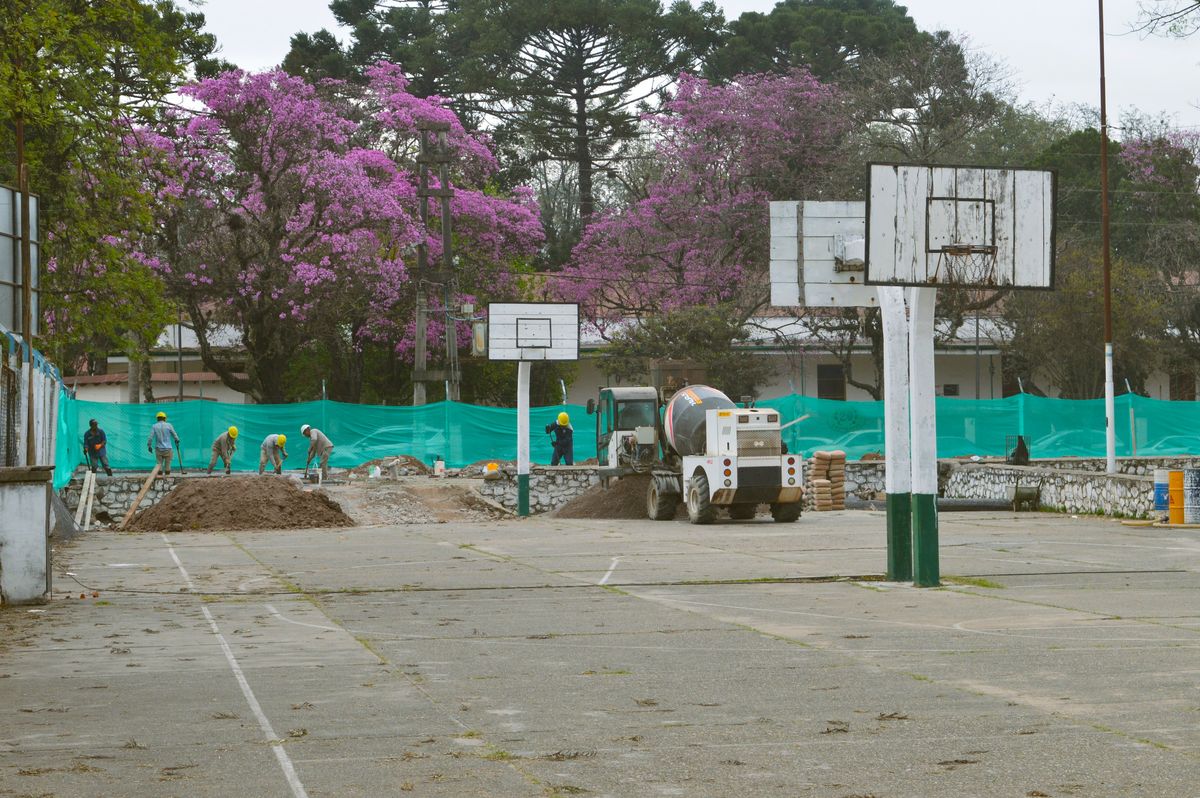 Al presente, los equipos trabajan en la demolición de pisos y en la construcción de nueva carpeta en la cancha de hándbol.