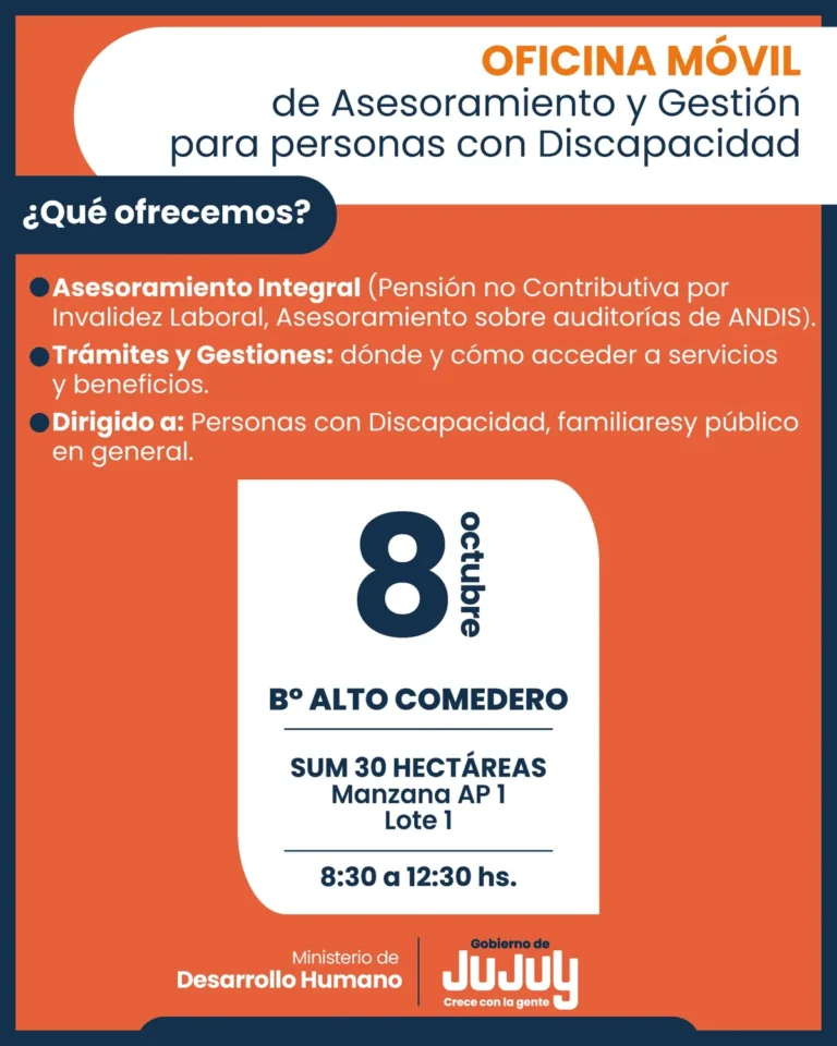 El Ministerio de Desarrollo Humano de Jujuy a través de la Dirección Provincial de Inclusión de Personas con Discapacidad informa que...
