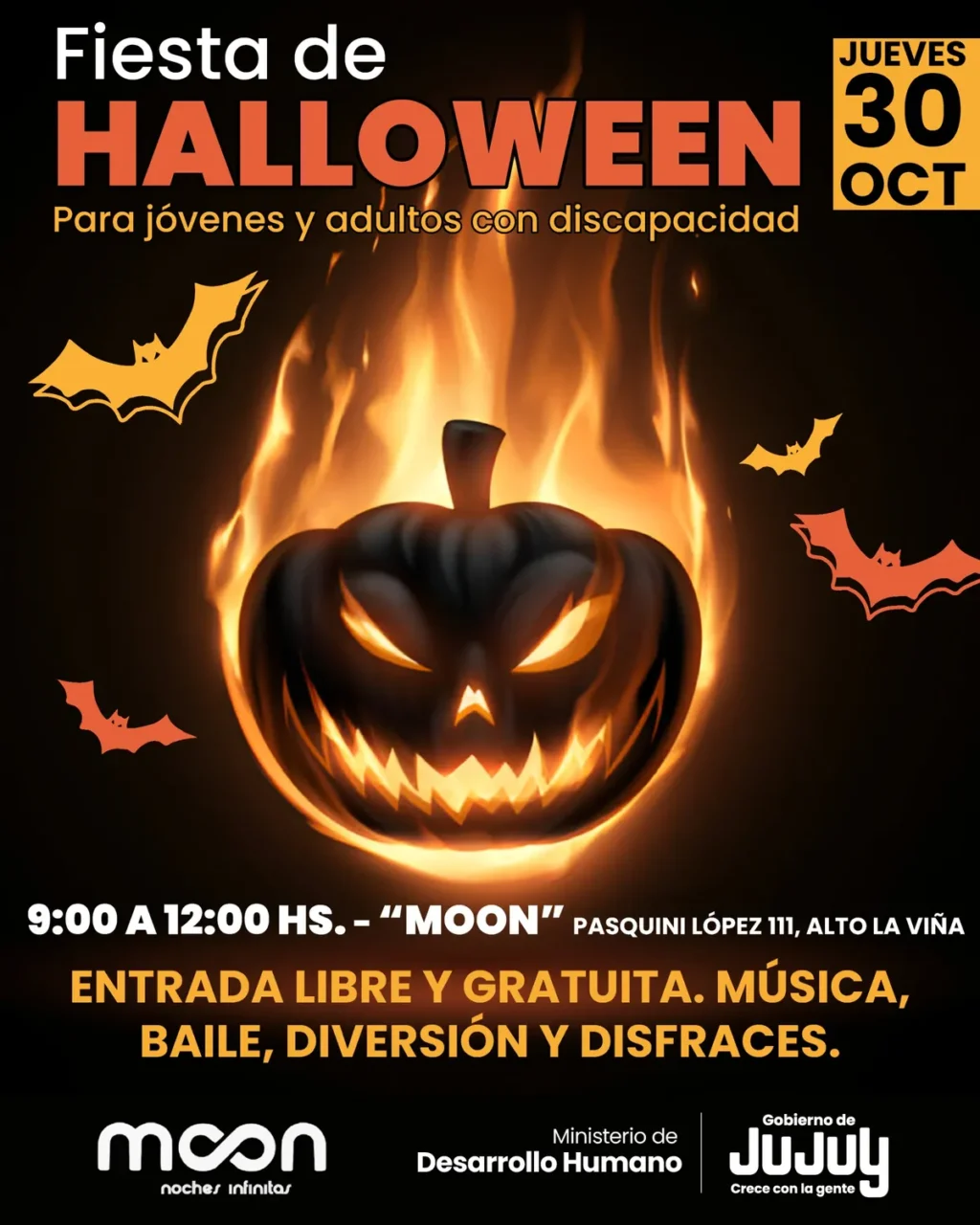 El Ministerio de Desarrollo Humano, a través de la Secretaría de Desarrollo Integral y la Coordinación de Calidad de Vida, llevará adelante una Fiesta de Disfraces por Halloween, una propuesta recreativa destinada a jóvenes y adultos con discapacidad, con el propósito de promover la participación activa en espacios de encuentro y disfrute.