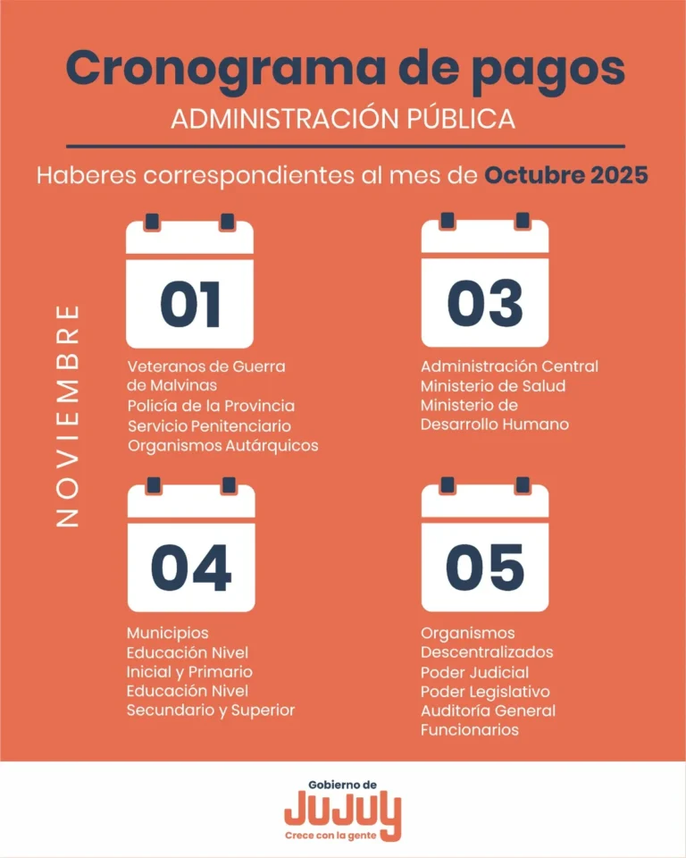 Sábado 1 de noviembre de 2025 Veteranos de Guerra de Malvinas Policía de la Provincia Servicio Penitenciario Organismos Autárquicos Lunes...