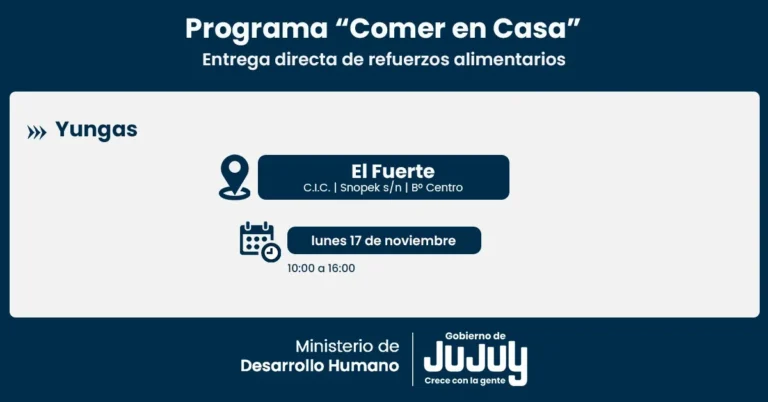 El Ministerio de Desarrollo Humano, a través de la Secretaría de Asistencia Directa, comunica que desde el lunes 17 de noviembre...