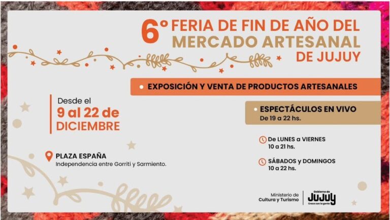 La 6ª Feria de Fin de Año del Mercado Artesanal de Jujuy abre sus puertas en la Plaza España (Independencia...