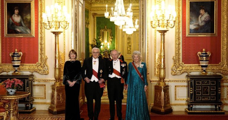Frank-Walter Steinmeier y su esposa Elke Budenbende participaron de una pomposa velada con el rey Carlos III y la reina...