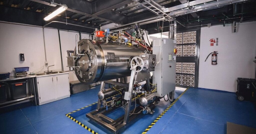 - Es un método mucho más ecológico que la incineración. El cuerpo se introduce en una máquina con agua y un potente alcalino, normalmente hidróxido de potasio.
