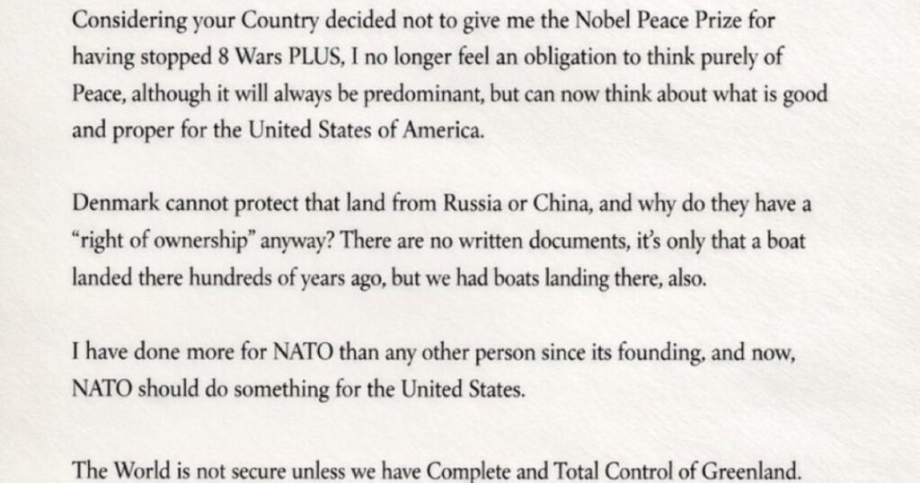 «Ya no siento la obligación de pensar en la paz»: la carta que le envió Trump al premier de Noruega porque no le otorgaron el Premio Nobel